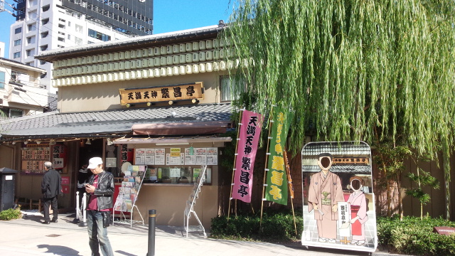 天満宮(てんまんぐう)の境内(けいだい)にある繁昌亭(はんじょうてい)です。