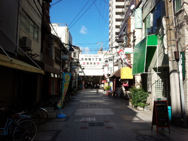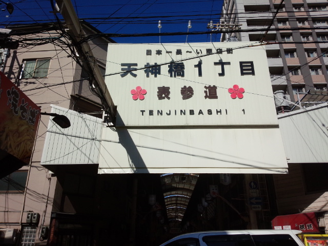 天満(てんま)の駅(えき)から天神橋(てんじんばし)1丁目(ちょうめ)までアーケードのないところまで歩(ある)きました。