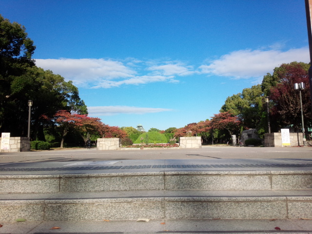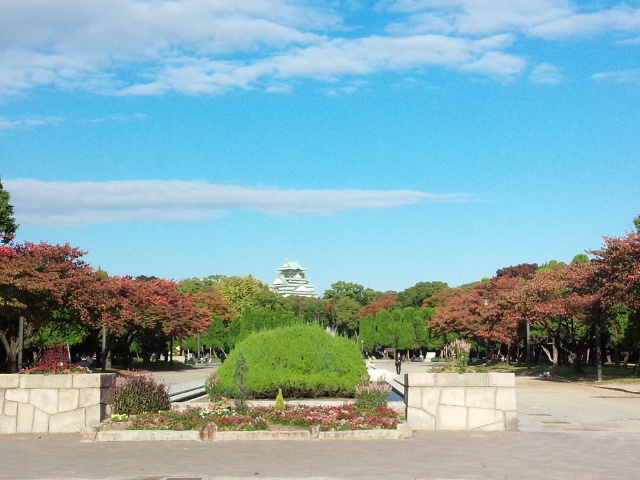 秋(あき)の空(そら)に、悠悠(ゆうゆう)とそびえ立(た)つ大阪城(おおさかじょう)です。