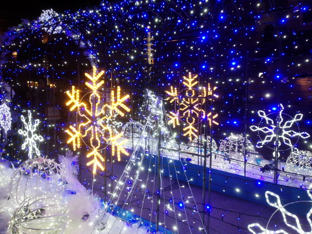 外(そと)に出(で)るとクリスマスのイルミネーションが輝(かがや)いていました。