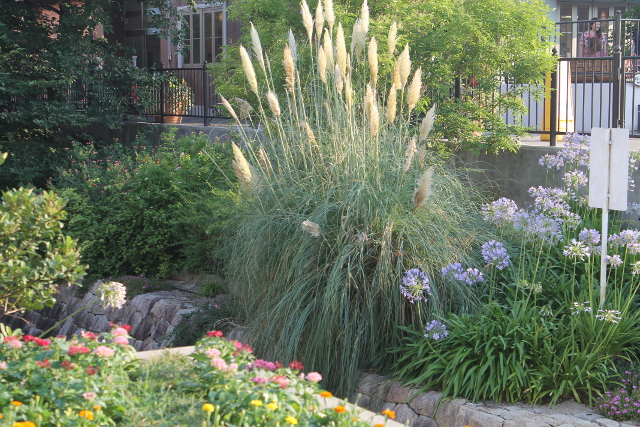 つかしんのせせらぎ通(どお)りで見(み)かけたススキとアガパンサスです。