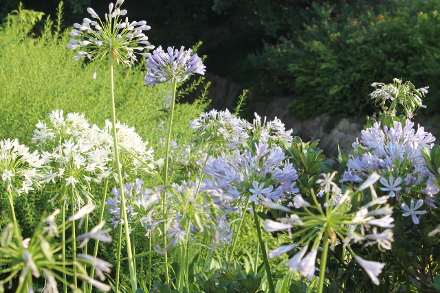アガパンサスの花(はな)にも容赦(ようしゃ)なく太陽(たいよう)が照(て)りつけていました。