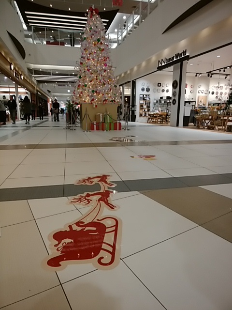 伊丹昆陽イオンの一階の床に張られたクリスマスの飾りです。