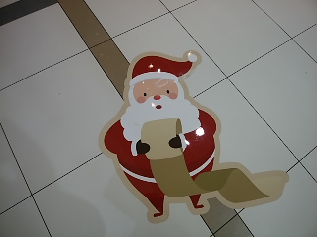 サンタクロースのシールです。ちょっと恐れ多いことかも知れませんが、気が付かない人は平気で踏みつけて歩いていました。