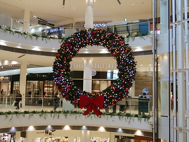エレベーターの裏の吹き抜けの丸い広場の所に上から大きなリースも飾られていました。