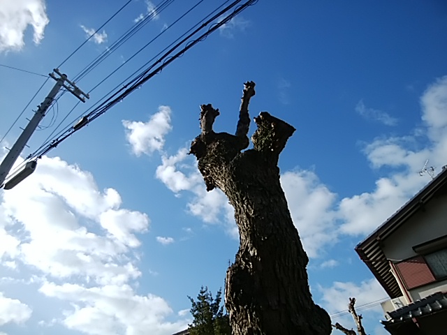 公園の前に大きななんきんはぜがかなり剪定されてずんぐりむっくりと立っていました。