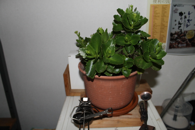この輝くような緑色がいいですね。マユハケオモトの鉢と入れ替わって小さな森がきたみたいです。