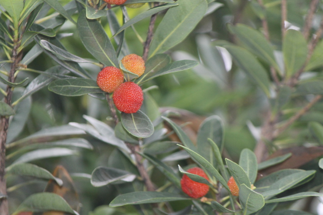 今年はヤマモモの実がたくさんなっていました。一番盛りの10日ぐらい前の夕方、木に登って実を採る人がいて驚きました。ジャムとかにしておいしいそうです。来年は頑張って採集してみようかと思いました。地面に落ちる実の多さに驚いたのも最近でした。カメラを持って先ほど様子を見に行くとほとんどの木にはもう実がついてはいませんでした。