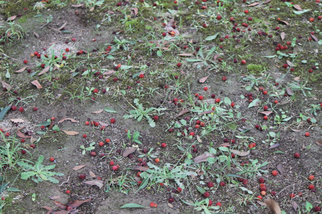 足下にはまだ小さく萎んで赤い実がたくさん散らばっていました。