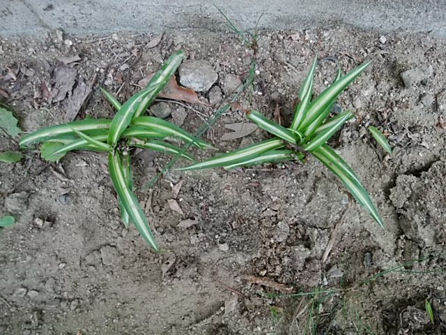 昨秋に植え付けたオリヅルランの子苗がいつの間にか大きくなっていました。肥料も与えず時々の水だけで頑張って成長しています。