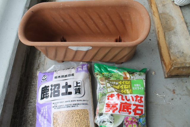 まず、朝顔の鉢の横に置かれていたプランターをきれいに水洗いし、コーナーーに行き、鹿沼土を買ってきました。