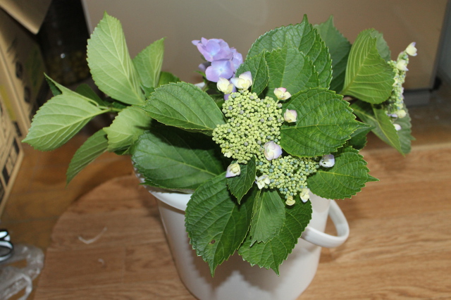 我が家の近くのガクアジサイからも後ろに隠れている枝を2~3本いただきました。
