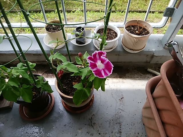 今朝、待ちに待った朝顔の花が咲きました。大きく咲いたのでちょっと驚きましたが、この朝顔の花を見て予てから計画していた、紫陽花の挿し木に取りかかることにしました。