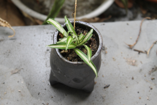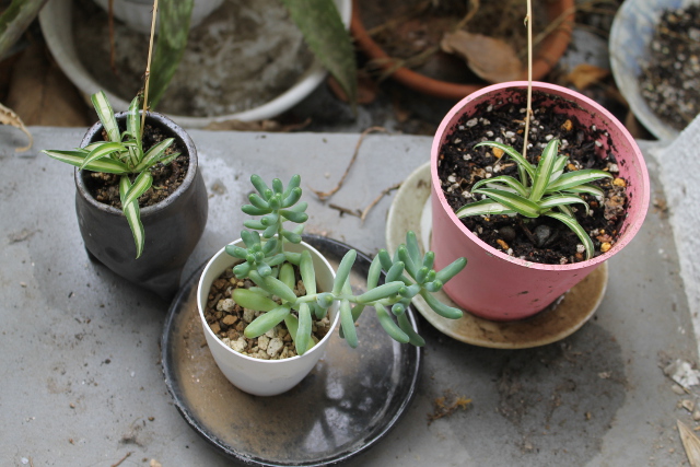 もう一つ和風の小さな鉢もあったので子苗2つを土付きにしてあげました。根を出してくれれば、独り立ちさせます。
