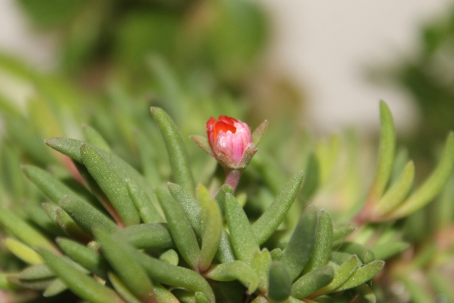 篠山(ささやま)のおばあちゃんのお店(みせ)で買(か)ってきたマツバボタンの苗(なえ)を鉢(はち)に植(う)え替(か)えていたのですが、元気(げんき)に葉(は)が生(い)き生(い)きとしてきました。小(ちい)さな花(はな)が咲(さ)き出(だ)しました。