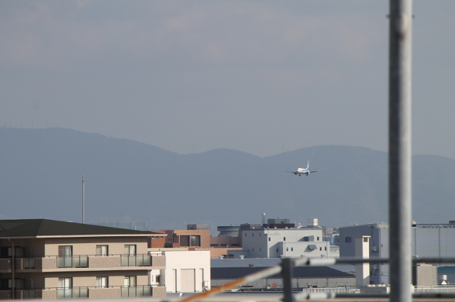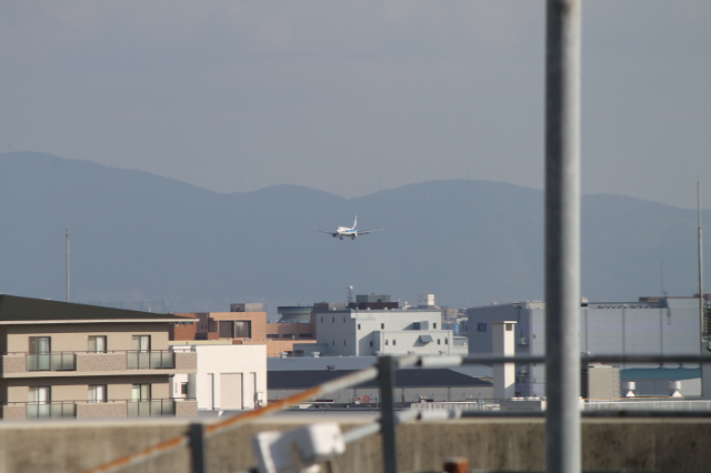 連続してシャッターを切ったのですが、飛行機のスピードは速いですね。グングン降りてきました。ANA機です。