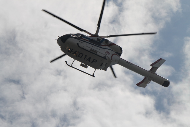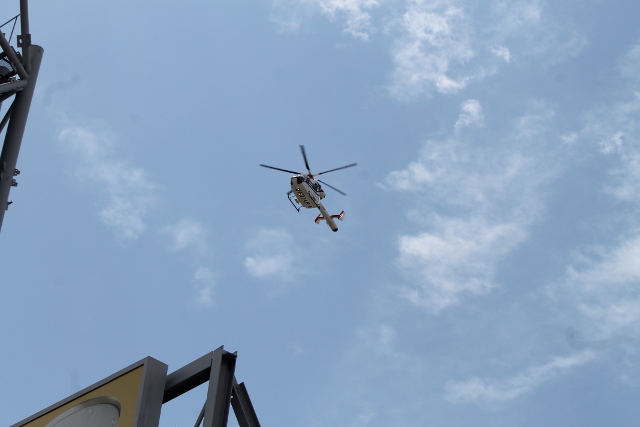 ヘリコプターの音(おと)が聞(き)こえてきました。