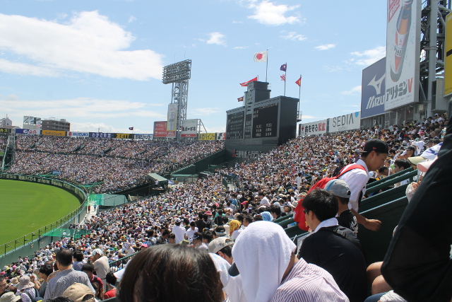 夏(なつ)の高校野球(こうこうやきゅう)が二日(ふつか)遅(おく)れで開幕(かいまく)しました。昨日(きのう)の今日(きょう)ですが、外野席(がいやせき)は超満員(ちょうまんいん)で座席(ざせき)が熱(あつ)かったです。汗(あせ)まみれで第一試合(だいいちしあい)が始(はじ)まりました。