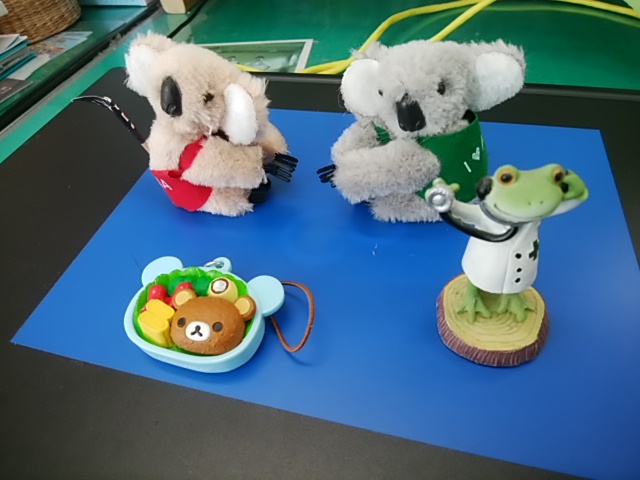 オーストラリアからのお土産、コアラと尼崎の隠れ喫茶店で購入したカエルのお医者さんを並べてみました。