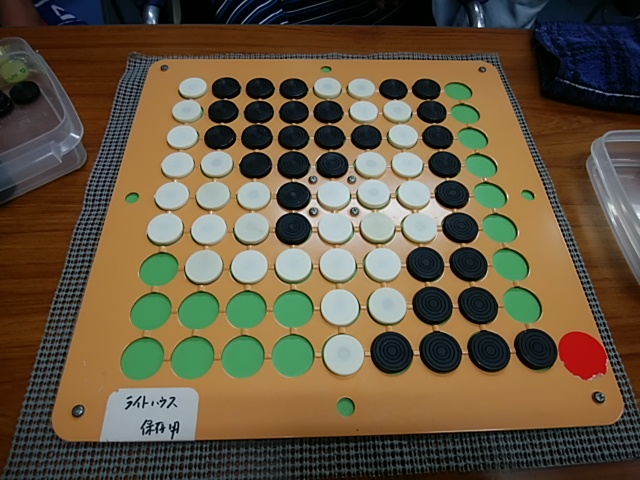 9対8で白の一目勝ちでした。真剣に打つのでこの人と3局、視覚障害者の人と2局戦ってヘトヘトになりました。