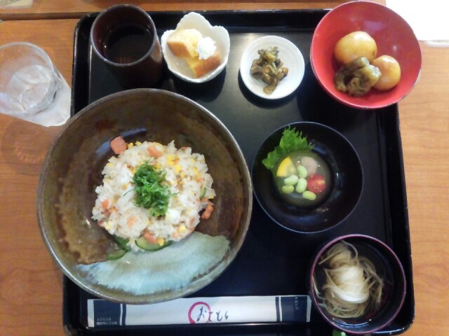 この中では特に新じゃががおいしかったです。甘辛あんかけとありましたが、ジャガイモと一緒に揚げられていたシシトウが辛かったのです。人参ケーキのデザートもおいしかったです。