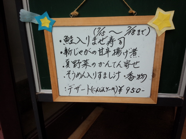玄関のところのホワイトボードに昨日の献立が書いてありました。