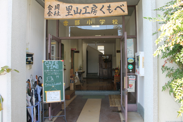 5年前に閉校になった雲部小学校の建物をそのまま使っていろいろなお店や作業場をやっているというものでした。職員室をそのまま使って食堂になっていました。