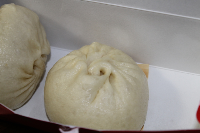 アップで撮影すると、頑固な豚の顔に見えました。顔をくしゃくしゃにしたおじいさんにも見えました。ちょっと面白かったです。大阪では肉まんと言わずに豚まんと言います。最近コンビニでは若い人たちが肉まんって言いながら買っていますね。