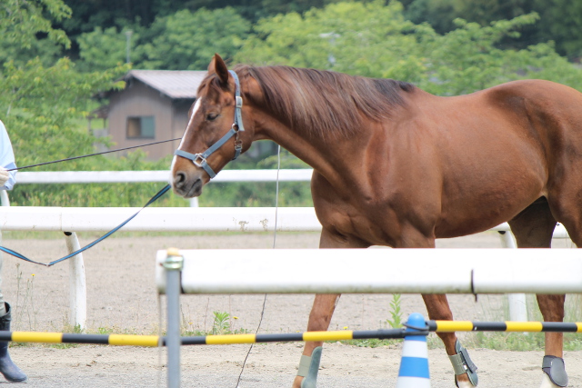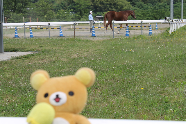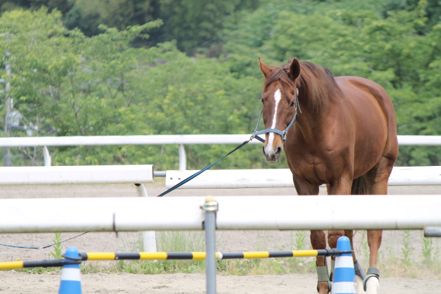 山羊のいた緑地から下を見ると馬が走っているのが見えました。早速歩いて馬場まで行ってみました。残念ながら一般の人は馬場には入れませんという表示がありました。