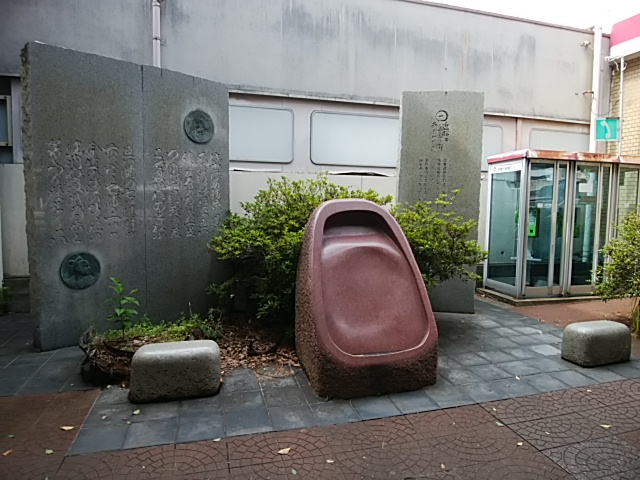 阪急塚口駅の南口に飾られていました。近松門左衛門が尼崎の久々知の近くのお寺で執筆をしたことを記念しているそうです。