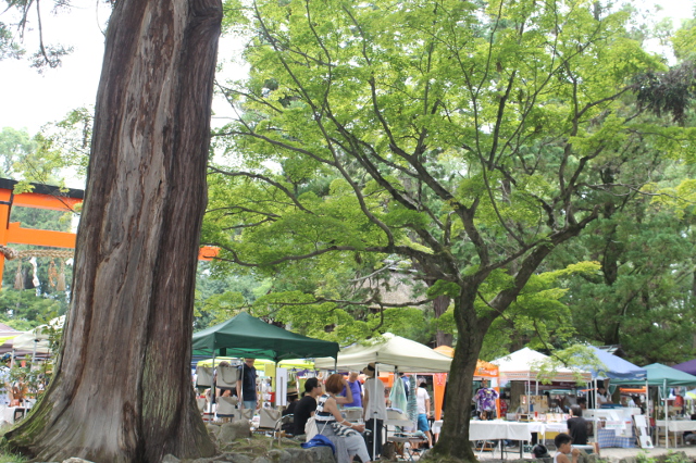 上賀茂神社の手作り市に一年ぶりに行ってきました。このブログで調べると去年の7月24日に出かけていて、1月には初詣に行っています。この暑さの中でボーッとしながらお店を見て回りました。まず駐車場横のトイレが新しくなっていました。和式の立派なトイレでした。