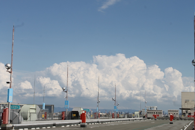 屋上(おくじょう)の駐車場(ちゅうしゃじょう)の一角(いっかく)が花火大会(はなびたいかい)にために使用禁止(しようきんし)になっていました。そこから飛行機(ひこうき)ではなくて雲(くも)を撮影(さつえい)しました。