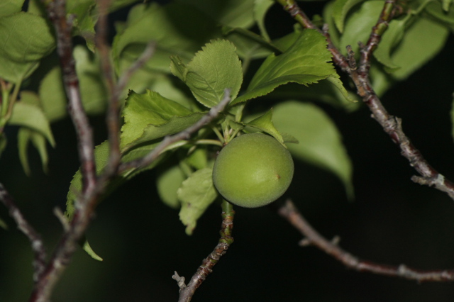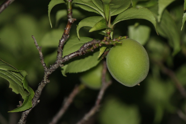 春の宵、公園の柵の外に植えられた梅の木になった実が夜の風に吹かれて気持ちよさそうに揺れていました。だいぶ大きくなったのですが、今回はどなたもまだ実を摘んではいないようです。