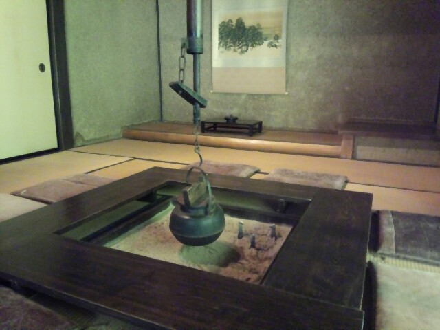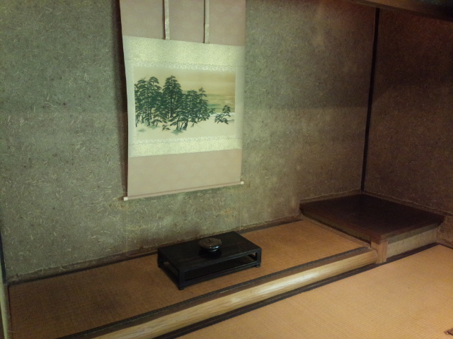 昨日訪れた、はりま焼き生野総本店のお店の奥にある和室です。囲炉裏があって床の間には掛け軸が飾ってありました。