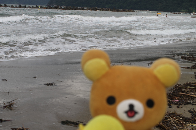 こんな大(おお)きな波(なみ)とそんなに暑(あつ)くない気温(きおん)でも泳(およ)いでいる人(ひと)がいました。八月(はちがつ)いっぱいは海水浴場(かいすいよくじょう)が開(ひら)かれていたのですね。