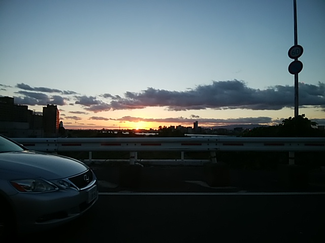 クルマの中から夕焼けを撮影しました。
