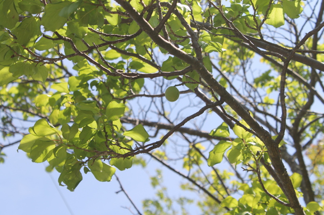 いよいよ梅の実が大きくなりました。写真中央のまん丸い梅の実。本当にまん丸くなるのです。