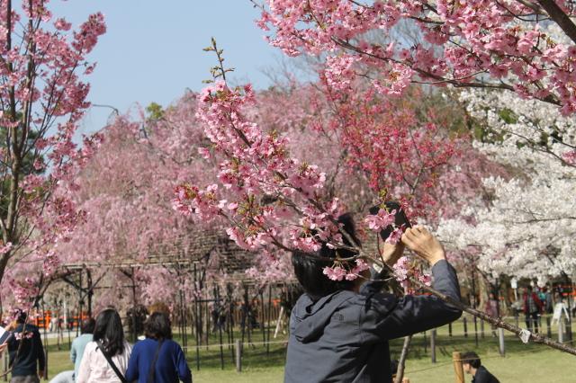 上賀茂神社を飾っていた桜です。それぞれに名前がかかっていました、どれもみな元気いっぱい咲いていました。ピンクと赤色で華やかな花が訪れる善男善女を迎えてくれていました。結婚式も行われていて、記念写真の一団や、花嫁、花婿を先頭に列をなして参拝する一団など華やかな情景が花の春を盛り上げていました。