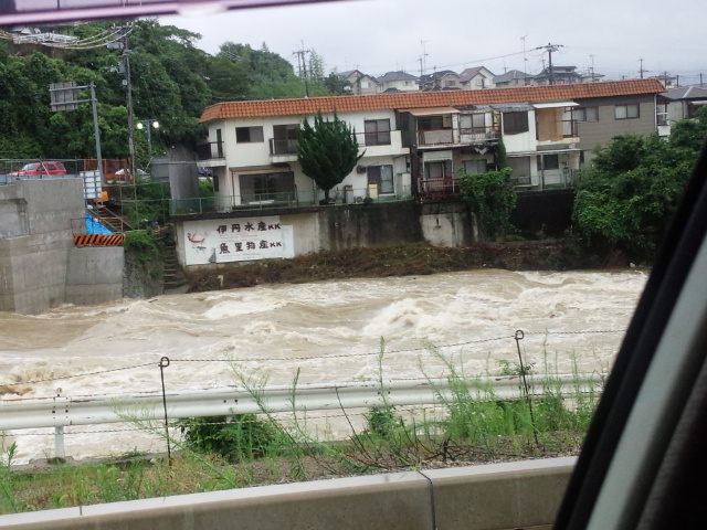たまたま多田大橋(ただおおはし)にさしかかったので、窓(まど)から見(み)ると凄(すご)い流(なが)れでした。急(いそ)いでスマホで撮影(さつえい)しました。