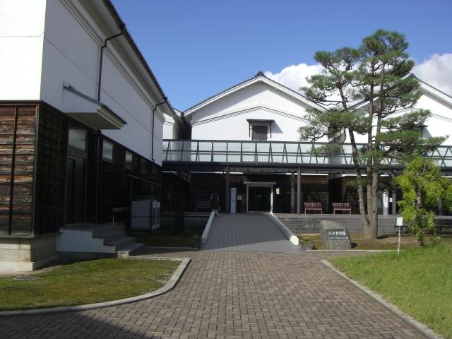 綾部市内にある「グンゼ博物苑」の3つの蔵です。受付で入場料を払うと係りの人が白い繭玉が入った小袋をひとつくれました。合計4つの蔵が並んでいましたが、一番目の蔵は地元の人の日本画展をしていたので一番最後に拝見させてもらいました。