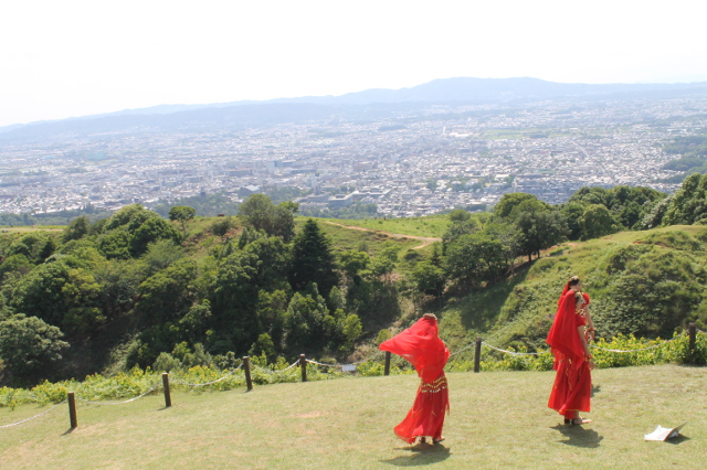 この赤い衣装を着て結婚式で踊りを披露するらしく若草山頂で撮影していました。