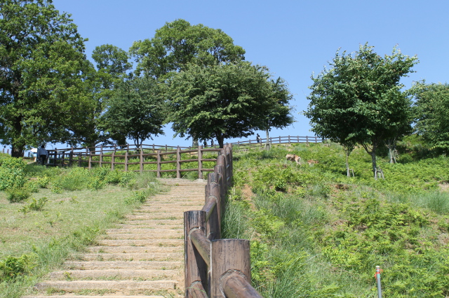 若草山入山口の方から撮影してみました。空の青と木々の緑がとても美しかったです。風がすがすがしかったです。空気がすがすがしかったです。