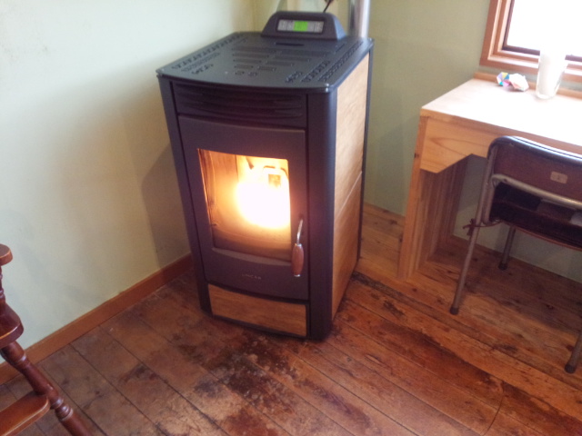 この部屋を暖めているストーブです。固形燃料を使った薪ストーブなんでしょうね。よく燃えていました。静かに食べていると時折何か語りかけるような、いびきのような音が聞こえてくるのに気づきました。このストーブに排気なのか、換気なのかそのような設備がついているのでしょうね。