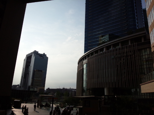 大阪駅(おおさかえき)の隣(となり)、グランフロントとツインタワービルです。
