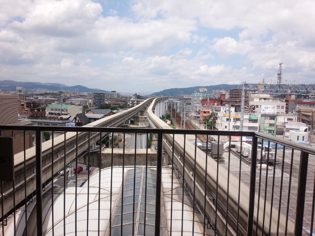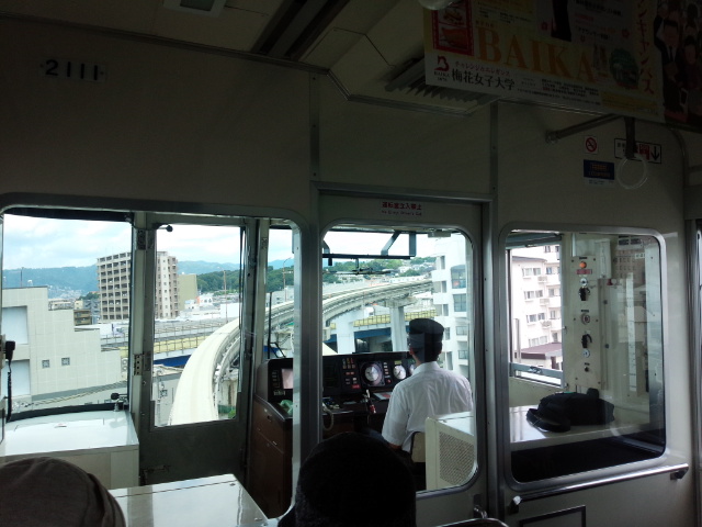 先頭車両(せんとうしゃりょう)からの風景(ふうけい)です。モノレールって料金(りょうきん)は高(たか)いけれど景色(けしき)はいいですね。