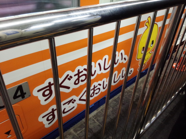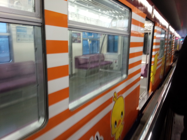 モノレール千里中央駅で見たチキンラーメン電車です。