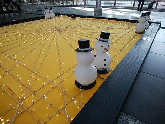 JR大阪駅の時空(とき)の広場です。小さなあかりと雪だるまでいくつかの平面を飾っていました。夜になるとたぶんきれいなのでしょうね。
