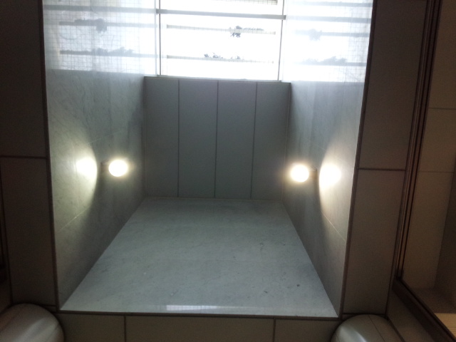 地下鉄長堀鶴見線の森ノ宮駅でのホームからながーいエスカレーターに乗って、天井を撮影しました。壁の明かりがちょっといいなと思って撮影したのですが、うまく写らなかったようです。