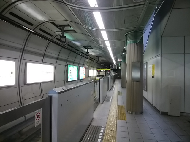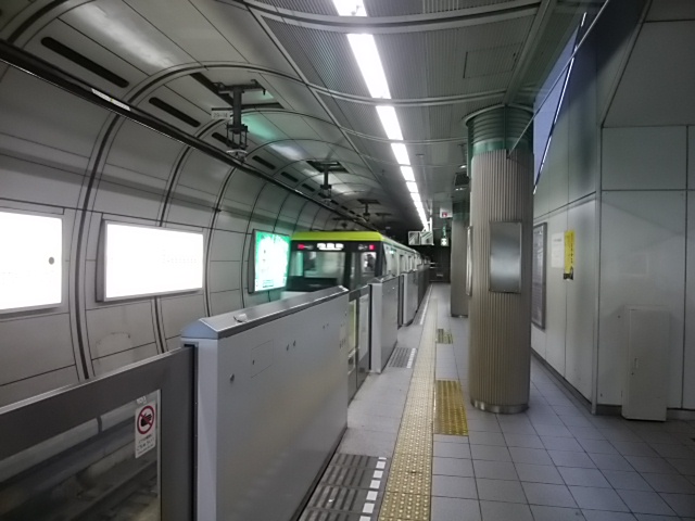 御堂筋線や谷町線の車両と違って、小ぶりなんです。全体に小さくて天井も低くて、一両に乗れる定員も少ないと思います。それから以前にも書いたのですが、車掌さんがいません。車内放送もドアの開閉もすべて運転手さんです。
