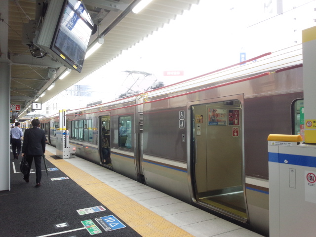 JR高槻駅の1番ホームです。新快速電車が入ってきました。